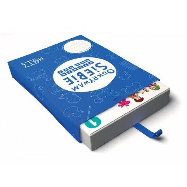 Odkrywam siebie. Szkoła tuż-tuż. to pakiet składający się z czterech kart pracy oraz innowacyjnej wyprawki.Karty pracy (części 1-4) są ukierunkowane na wszechstronny rozwój dzieci, pogłębianie ich umiejętności i kształtowanie sprawności przyswajania wiedzy poprzez aktywne działanie. Uczą dzieci samodzielności, rozróżniania i nazywania emocji, rozwijają koncentrację, wyobraźnię, pozwalają dzielić się uwagami na temat otaczającej rzeczywistości, stwarzają warunki do poznawania świata, rozwijają sprawność manualną.Polecenia w kartach pracy są proste, jasne i jednoznaczne, skierowane bezpośrednio do dziecka.Wyprawka to 25 propozycji prac plastycznych z wykorzystaniem dodatkowych materiałów - papierów o różnej fakturze i kolorze. Wyprawka rozwija wyobraźnię dzieci, sprawność manualną oraz przez dodatkowe elementy wspiera proces edukacyjny dziecka.Całość publikacji zapakowana jest w funkcjonalną teczkę, która może być doskonałym miejscem na przechowywanie prac wykonywanych w przedszkolu. Dodatkowo każdy pakiet zapakowany jest w estetyczny i przydatny worek, który może być wykorzystany do przechowywania butów lub drobnych zabawek.