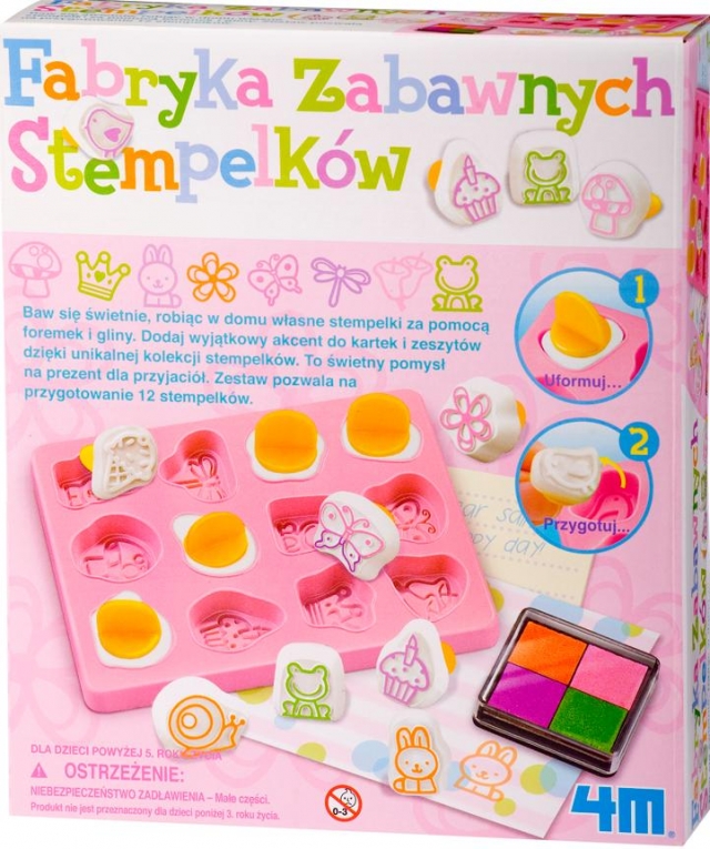 Naciskasz stempelek i gotowe! Właśnie w szybki sposób wykonałeś oryginalny i precyzyjny wzór! Stempelki to świetne przyrządy do tworzenia ozdób! Jak jednak stworzyć same stempelki?Dzięki tej zabawce samodzielnie stworzysz własne stempelki, które później posłużą Ci do tworzenia mnóstwa pięknych projektów! To wyjątkowa zabawa polegająca na tworzeniu gipsowych odlewów!Możesz stworzyć własny wzór stempelka lub zdecydować się na jeden z proponowanych w zestawie. To, jak będzie wyglądał efekt końcowy zależy tylko od Ciebie!Uwagi: Powyżej 5. roku życia.Zawartość: 1 forma do odlewów z 12 wzorami, 12 plastikowych uchwytów, biała masa, 8 arkuszy papieru, 4 kolory tuszu do stempelków, szczegółowe instrukcje.