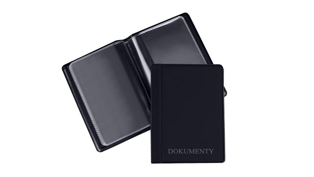 Opis produktuZasady bezpieczeństwaOkładka wykonana z czarnej folii PVC, wewnątrz usztywniona tekturą. Wyposażona w 6 podwójnych koszulek mieszczących 14 dokumentów lub kart. Kieszenie na wewnętrznej stronie okładek. Poszerzany grzbiet zapewniający równomierny rozkład zawartości. Okładka pionowa w kieszonkowym formacie. x