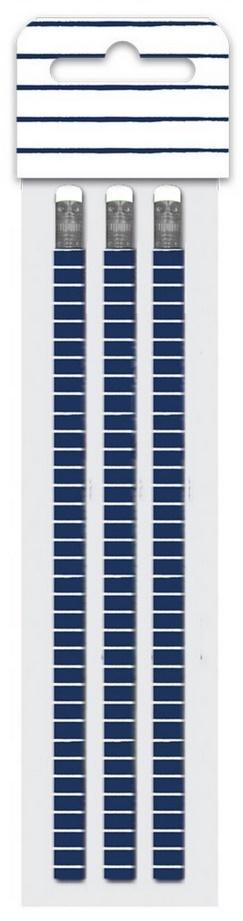 Ołówki drewniane Fashion - granatowe w białe paski.