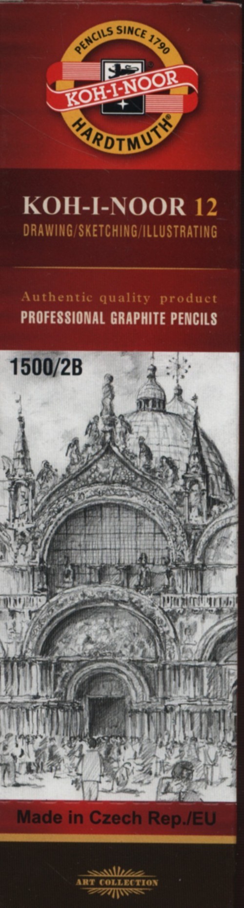 Ołówki grafitowe KOH-I-NOOR serii 1500, charakteryzują się wysoką czystością grafitu z którego zostały wykonane. Oprawki wykonane z drewna cedrowego wielokrotnie lakierowane. Dostępne są w skali gradacji od 10H do 8B. Dzięki tak szerokiej skali gradacji są bardzo wszechstronne i znajdują zastosowanie w grafice, rysunku technicznym, plastyce, oraz szkole, biurze i codziennym użyciu. Twardość 2B, 12 sztuk w opakowaniu zbiorczym.