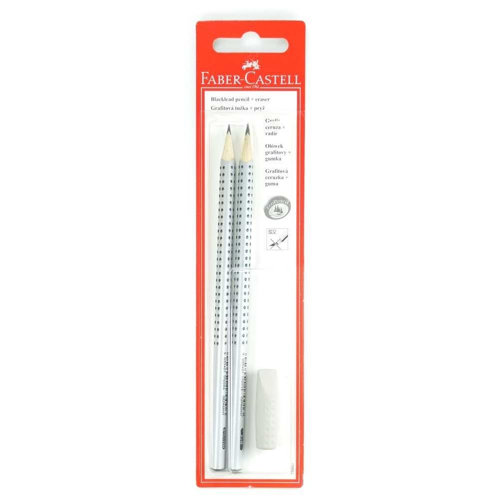 Ołówek Grip 2001/HB,B 2 Sztuki + gumka nakładka szara