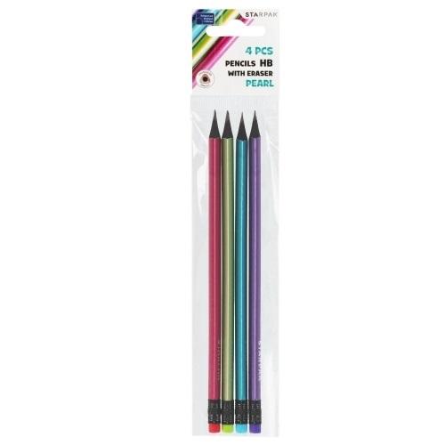 Ołówek Starpak trójkątny Pearl z gumką HB 4 szt.