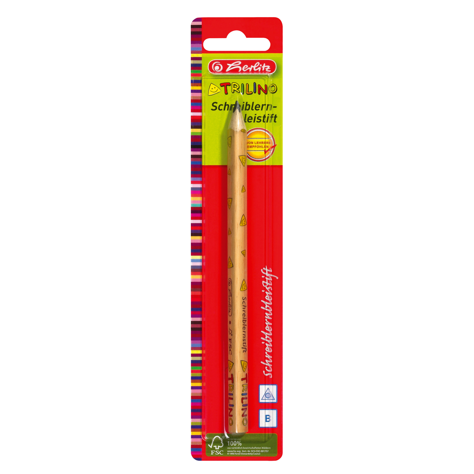 Ołówek Trilino posiada grubą, drewnianą obudowę, o trójkątnym kształcie. Stworzony dla dzieci rozpoczynających naukę pisania. Wkład grafitowy o twardości HB.