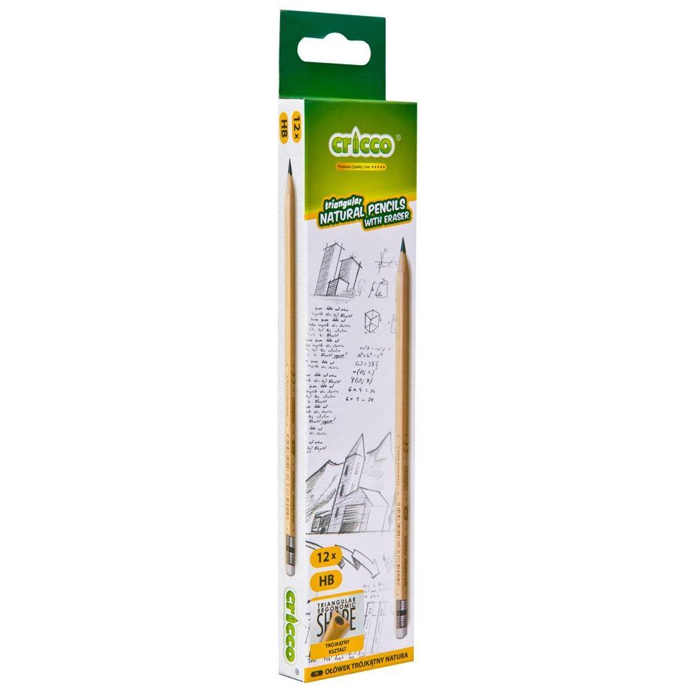 Ołówek trójkątny natura z gumką HB (12szt) CRICCO