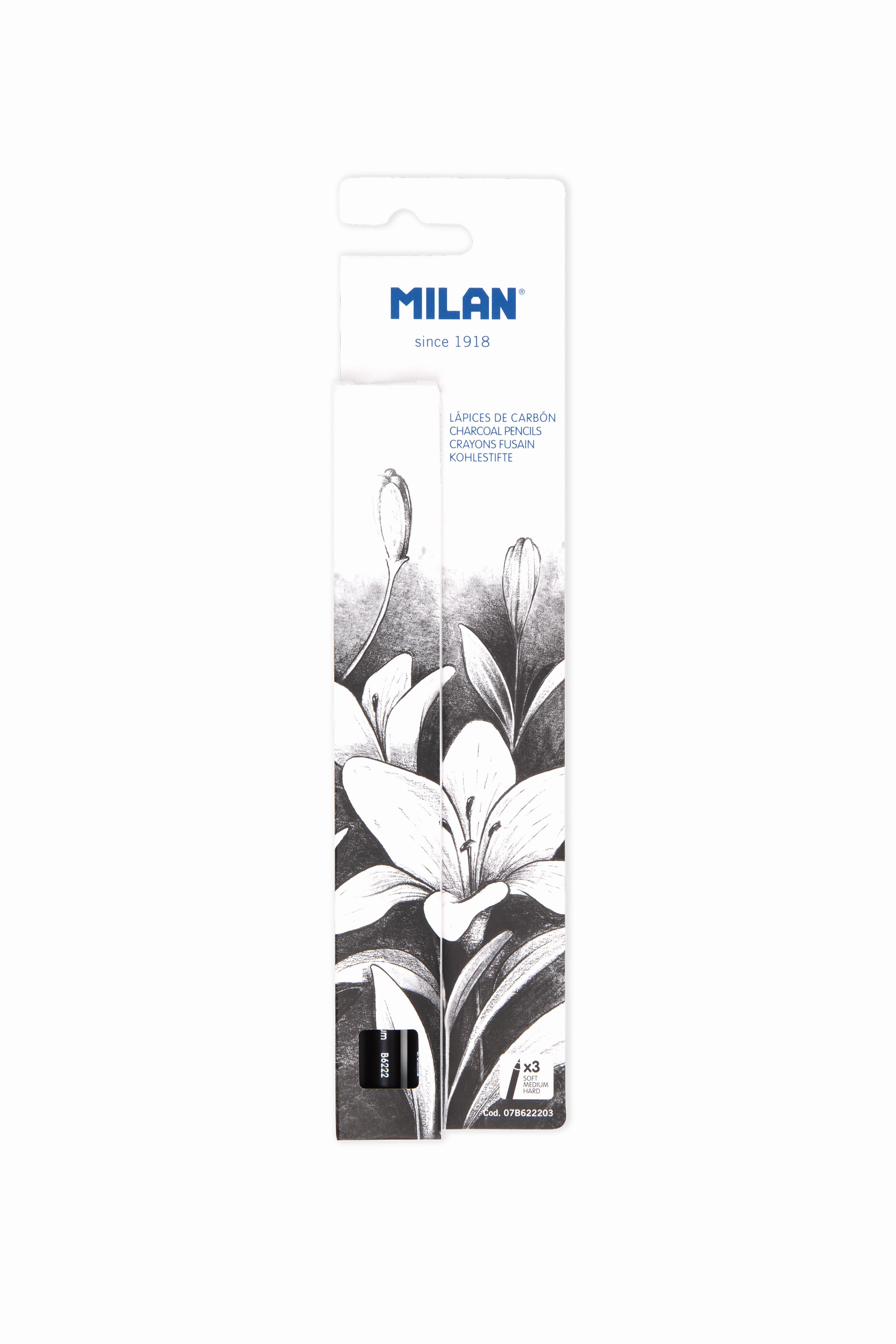 Opis produktuZasady bezpieczeństwaZestaw ołówków MILAN Art do rysowania węglem. Okrągłe ołówki o grubości O 4 mm. Kartonowe opakowanie zawiera 3 sztuki o różnej twardości (miękka, średnia i twarda) dla różnych intensywności pociągnięć.