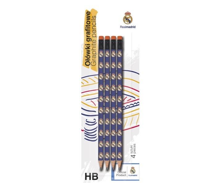 Ołówki grafitowe trójkątne z gumką HB RM-156 Real Madrid 4 4 sztuki