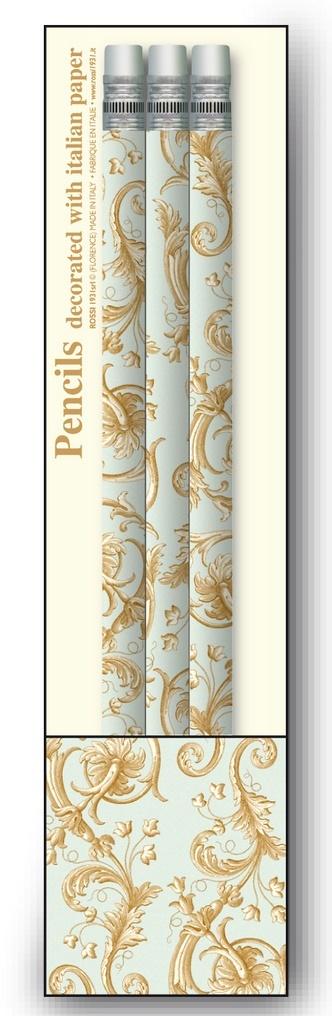 Zestaw 3 ozdobnych ołówków ręcznie owiniętych w dekoracyjny włoski papier. Produkt z ekskluzywnej galanterii wyprodukowany we włoskiej manufakturze.