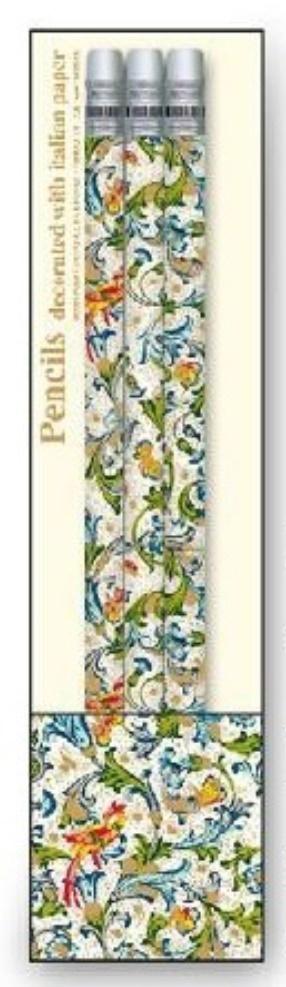 Zestaw 3 ozdobnych ołówków ręcznie owiniętych w dekoracyjny włoski papier. Produkt z ekskluzywnej galanterii wyprodukowany we włoskiej manufakturze.