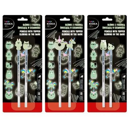 Ołówki z figurką świecącą w ciemności 2szt KIDEA