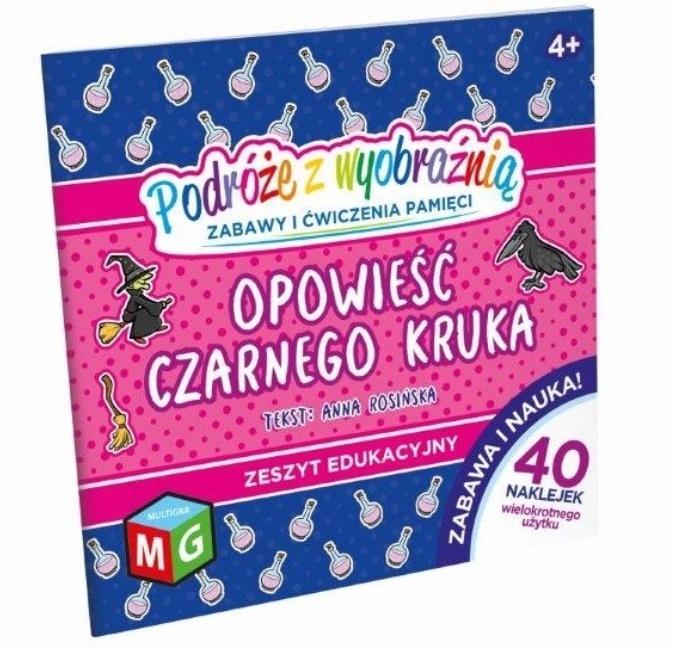 Podróże z wyobrażnią- zabawy i ćwiczenia pamięci- opowieść czarnego kruka. Zawiera 40 naklejek wielokrotnego użytku.