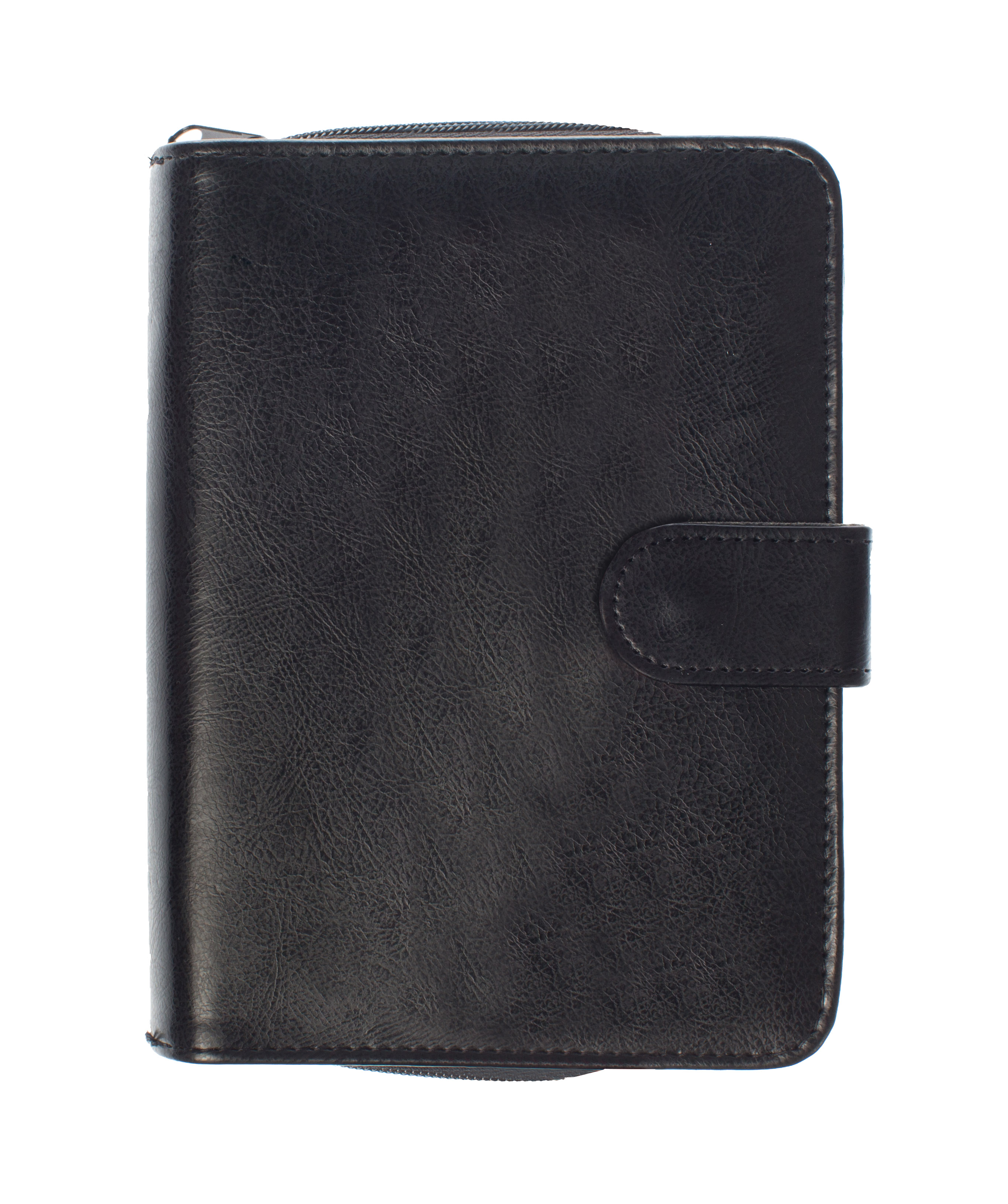 komplet wkładów: Kalendarz 2024 (TDW - tydzień do wglądu), Notes, Finanse, Adresy, Pamiętaj wymiary: 190x125 mm materiał: skóra ekologiczna gumkę na długopis kieszonki na dokumenty ring zamykany na zatrzask saszetkę na suwak