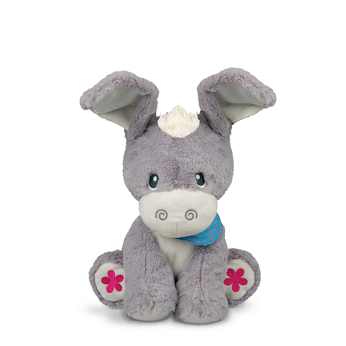 Osiołek A ku Ku to miękka, przyjemna w dotyku, interaktywna przytulanka. Mówi po polsku, na łapkach ma przyciski, opadające uszka. Po wciśnięciu przycisku osiołek bawi się w A ku ku, wypowiada frazy, śpiewa piosenki. Zabawka działa w 2 trybach 1. Tryb dzienny z wesołymi zdaniami i tematycznymi piosenkami. 2. Tryb nocny z usypiającymi dźwiękami i spokojnymi kołyskami. Osiołek ma opadające uszy. Śpioszek A Ku Ku pomaga rozwijać umiejętności: Poznawcze- wzbudzając u dziecka ciekawość Rozwój fizyczny rozwijając zmysły Rozwój społeczny rozwija emocje. Baterie: 3 x AA dołączone x