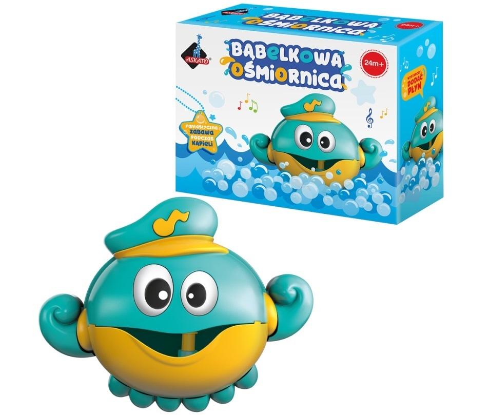 Ośmiornica z przyssawkami do robienia baniek mydlanych, wystarczy dodać dziecięcy żel do mycia, a z otworu będzie produkowana piana, x