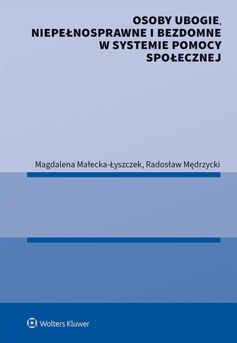Książka szczegółowo omawia sytuację osób niepełnosprawnych, bezdomnych i ubogich w systemie pomocy społecznej w Polsce, prezentując konkretne rodzaje wsparcia: m.in. zasiłki stałe, okresowe i celowe, usługi opiekuńcze, lecznicze i specjalistyczne, zapewnienie tymczasowego schronienia, mieszkania chronione, indywidualne programy wychodzenia z bezdomności, kontrakty i spółdzielnie socjalne. Autorzy krok po kroku wyjaśniają, kto i w jakich sytuacjach może ubiegać się o udzielenie konkretnej pomocy społecznej, jakie są należne świadczenia pieniężne i niepieniężne, do jakich podmiotów należy się zwrócić i jaka jest ich rola oraz jakie są warunki finansowania pomocy ze środków publicznych i prywatnych. Publikacja przeznaczona jest dla pracowników urzędów administracji publicznej, pracowników socjalnych, profesjonalnych pełnomocników adwokatów, radców prawnych oraz innych osób zajmujących się zawodowo pomocą społeczną. x