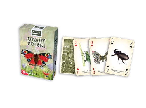 Opis produktuZasady bezpieczeństwaKarty zdobią ilustracje owadów, które występują na terenie Polski. W każdym zestawie znajduje się również broszura zawierająca opis poszczególnych gatunków oraz zasady 5 popularnych gier karcianych (wist, makao, kierki, remik i 66). x