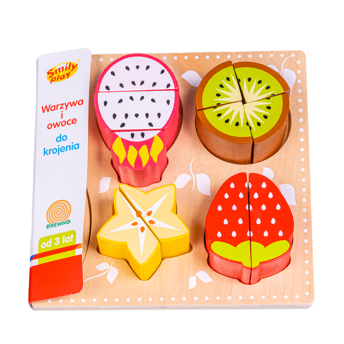 które uwielbia naśladować swoją mamę w kuchni. Każdy owoc składa się z części, które w łatwy sposób można połączyć poprzez rzep znajdujący się w środku. Owoce można przekroić bezpiecznym nożykiem i stworzyć wspaniały posiłek dla swoich gości. Dziecko bawiąc się rozwija zdolności manualne, poznaje nazwy owoców, uczy się kolorów. Idealne uzupełnienie zestawów kuchennych. x