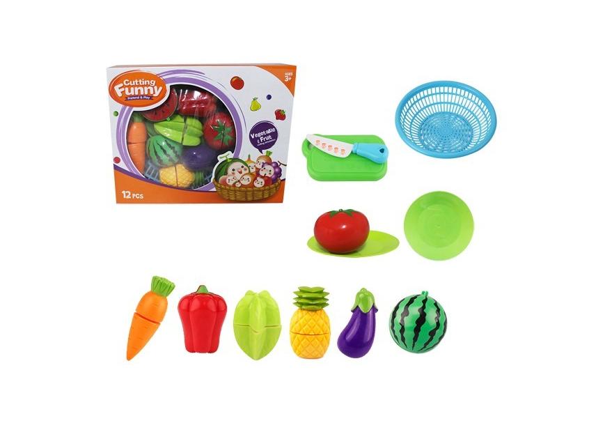 Plastikowe owoce i warzywa na rzepy do krojenia, Zestaw 12 sztuk.
