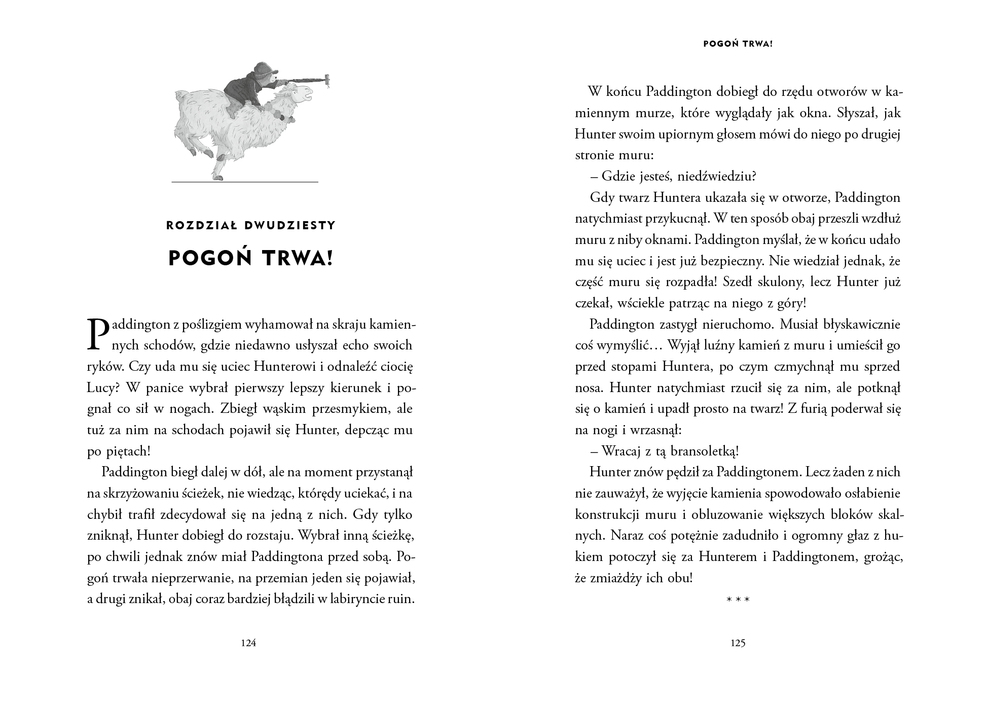 Opis produktuZasady bezpieczeństwaPodróż do Peru to wielka sprawa dla małego niedźwiadka. Nawet dla Paddingtona, który mieszka przecież w wielkim mieście. I choć jest już całkiem duży (od niedawna ma nawet prawdziwy paszport), to jednak nadal trzyma pod kapeluszem kanapki z marmoladą. Paddington dostaje list ze straszną wiadomością. Z ciocią Lucy dzieje się coś niedobrego! Pewnie staruszka tęskni za misiem Rodzina Brownów postanawia natychmiast wyruszyć do Peru. Kto mógłby przypuszczać, że czeka ich podróż życia, pełna niebezpieczeństw, dzikich zwierząt, starych map, tajemniczych zagadek i niejasnych wskazówek. Bo na miejscu okazuje się, że ciocia Lucy zniknęła w gąszczu amazońskiej dżungli. x