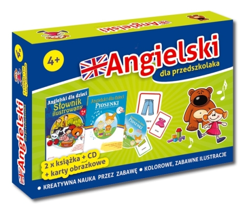 Opis produktuZasady bezpieczeństwaPakiet Angielski dla przedszkolaka 4+ to zestaw edukacyjny dla najmłodszych, który zapewnia aktywną naukę języka poprzez gry, śpiew i zabawę. Składa się z książki i słownika, płyt CD, na których znajdują się piosenki w wykonaniu 7-letniej Brytyjki i nagrania lektorów. Dodatkowo zestaw zawiera komplet kolorowych kart obrazkowych do nauki słówek. Pakiet został specjalnie opracowany tak, aby dziecko podczas zabawy aktywnie uczyło się języka angielskiego, doskonaliło rozumienie ze słuchu oraz wymowę. W pakiecie znajdują się: Słownik - 150 słów starannie wybranych dla najmłodszych - zabawne ilustracje słówek - pełne tłumaczenie na język polski Piosenki - książka + płyta CD - 14 melodyjnych utworów - teksty po polsku i angielsku - piosenki w wykonaniu małej Brytyjki Karty obrazkowe - dwustronne, angielsko-polskie karty - nauka angielskiego poprzez gry i zabawę - kolorowe, zabawne ilustracje x