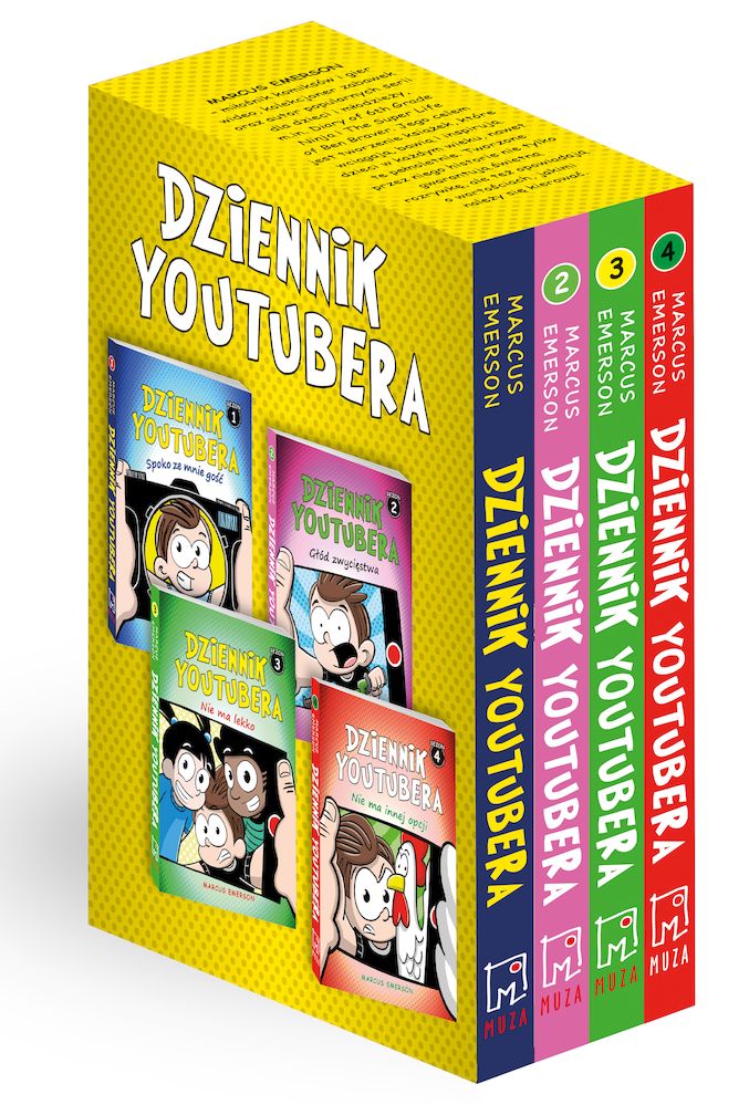 Opis produktuZasady bezpieczeństwaPakiet czterech książek z serii Dziennik Youtubera Cześć, nazywam się Davy Spencer! I wiecie co? Rodzice to są serio jacyś dziwni. Najpierw chcą się przenieść do innego miasta. Potem zmuszają mnie do pójścia do nowej szkoły. A na koniec nawet nie chcą mi kupić odpowiedniej komórki. Mam tego dość! Jest na to tylko jedno rozwiązanie. Muszę założyć swój kanał na YouTubie! I właśnie o to chodzi! Bycie nowym w szkole nie oznacza bycia samotnym czy anonimowym. Wystarczy rzucić się w wir tworzenia viralowych filmików. A pomysłów nie brakuje! Zwłaszcza że Davy to naprawdę spoko gość! Już w pierwszym sezonie na jego kanale pojawiają się recenzje szkolnych obiadów połączone z bitwą na jedzenie, filmiki o babci jeżdżącej na deskorolce czy tropieniu yeti. Później jest jeszcze lepiej! W kolejnym tomie Davy wpada na genialny pomysł! Pozwala swoim fanom decydować o tym, czego mają dotyczyć jego filmiki. Jeśli wszystko wypali, Davy będzie miał setki wyświetleń, fantastyczną zabawę, ale też szansę na wyczesany rower BMX. Droga do celu nie jest łatwa. Będzie musiał, m.in. zjeść diabelnie ostrą papryczkę czy zwiedzić nawiedzony strych. Ale to jeszcze nic! Najbardziej niebezpieczne wyzwanie jest jeszcze przed nim. Nawet nie domyślajcie się, o co chodzi! W kolejnym sezonie Davy szuka sławy na Comic Conie, podczas którego ktoś ukradł główną nagrodę w konkursie na najlepszy cosplay. Plan jest prosty. Chłopak musi sfilmować swoje prywatne śledztwo - dopaść przestępcę - wrzucić filmik na kanał - stać się BOHATEREM konwentu i SUPERGWIAZGĄ internetu. Czy mu się uda? Davy nie ma lekko! Zwłaszcza w czwartym sezonie, gdy chce nagrać filmik, który zapewni mu zaszczytne miejsce w kronice szkolnej. Niestety, na drodze do sławy staje mu pewien niesforny kurczak, który postanawia nawiać z "planu zdjęciowego". I to na oczach całej szkoły! Tu nigdy nie wiadomo, który filmik skończy się śmiechem, a który totalną katastrofą. Wiadomo jednak, że Davy to wasz człowiek od szalonej zabawy i właśnie teraz rusza do akcji! Przyłączycie się? x