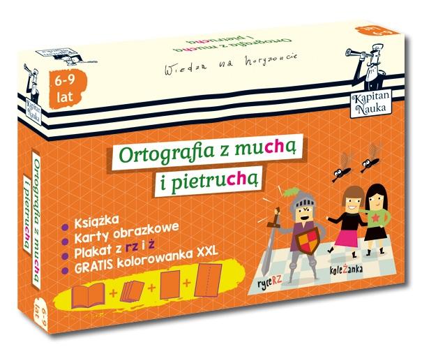 Opis produktuZasady bezpieczeństwaPakiet Ortografia z muchą i pietruchą to unikalny zestaw zawierający poradnik dla opiekunów, 110 dwustronnych, ilustrowanych kart wzbogacających słownictwo i uczących prawidłowej pisowni języka polskiego, plakat ortograficzny utrwalający pisownię wyrazów z "rz" i "ż" oraz kolorowankę ortograficzną XXL (55 x 41 cm). Całość stanowi doskonałe uzupełnienie nauki w pierwszych klasach szkoły podstawowej. Kolorowe, zabawne ilustracje stanowią dodatkową zachętę do samodzielnego zdobywania wiedzy. Pakiet zawiera 100 specjalnie opracowanych kart, dzięki którym dzieci z łatwością przyswajają poprawny sposób pisania aż 100 problematycznych słówek oraz 10 kart specjalnych z zasadami ortografii. Na awersie karty znajduje się słowo z wykropkowanym miejscem do wstawienia brakującej litery wraz z zabawną ilustracją, a na rewersie – odpowiedź w postaci poprawnie zapisanego wyrazu. Umożliwia to natychmiastowe sprawdzenie prawidłowego rozwiązania samodzielnie przez dziecko. Dzięki temu karty uczą ortografii globalnie, poprzez zapamiętywanie całych, poprawnie zapisanych wyrazów, a oryginalne ilustracje ułatwiają kojarzenie i utrwalanie prawidłowej pisowni. Karty świetnie sprawdzą się w domu, w szkole czy w poczekalni. Można zabrać je na spacer lub w podróż – są doskonałym sposobem na naukę i ćwiczenie w każdej wolnej chwili! Poradnik dla opiekunów (28 str.) prezentuje listę słów przyporządkowanych do właściwych zasad pisowni, 21 propozycji gier z kartami i atrakcyjne ćwiczenia ortograficzne oraz dyktanda. Plakat ortograficzny z zabawnymi, kolorowymi ilustracjami pomaga utrwalić najważniejsze zasady pisowni wyrazów z "rz" i "ż", a kolorowanka ortograficzna jest atrakcyjnym uzupełnieniem nauki przez zabawę, nie tylko ułatwia zapamiętywanie reguł ortograficznych, lecz także doskonali koordynację wzrokowo-ruchową i grafomotorykę oraz rozwija wyobraźnię. 10 ważnych reguł, których dzieci uczą się z tym zestawem: - ch wymienia się na sz - ch na końcu wyrazów - ó wymienia się na o - ż w zakończeniach -aż, -eż - ż wymienia się na g - rz w nazwach zawodów - rz po spółgłoskach p, b, t, g - u na początku wyrazu - si, zi, ci, dzi, ni przed samogłoskami - ś, ź, ć, dź, ń przed spółgłoskami Autorką ilustracji do kart jest Magdalena Popovics. Karty są integralną częścią poradnika 'Karty obrazkowe Ortografia' i nie mogą być sprzedawane osobno. W serii ukazał się także "Pakiet Ortografia z mrówką i borówką". x