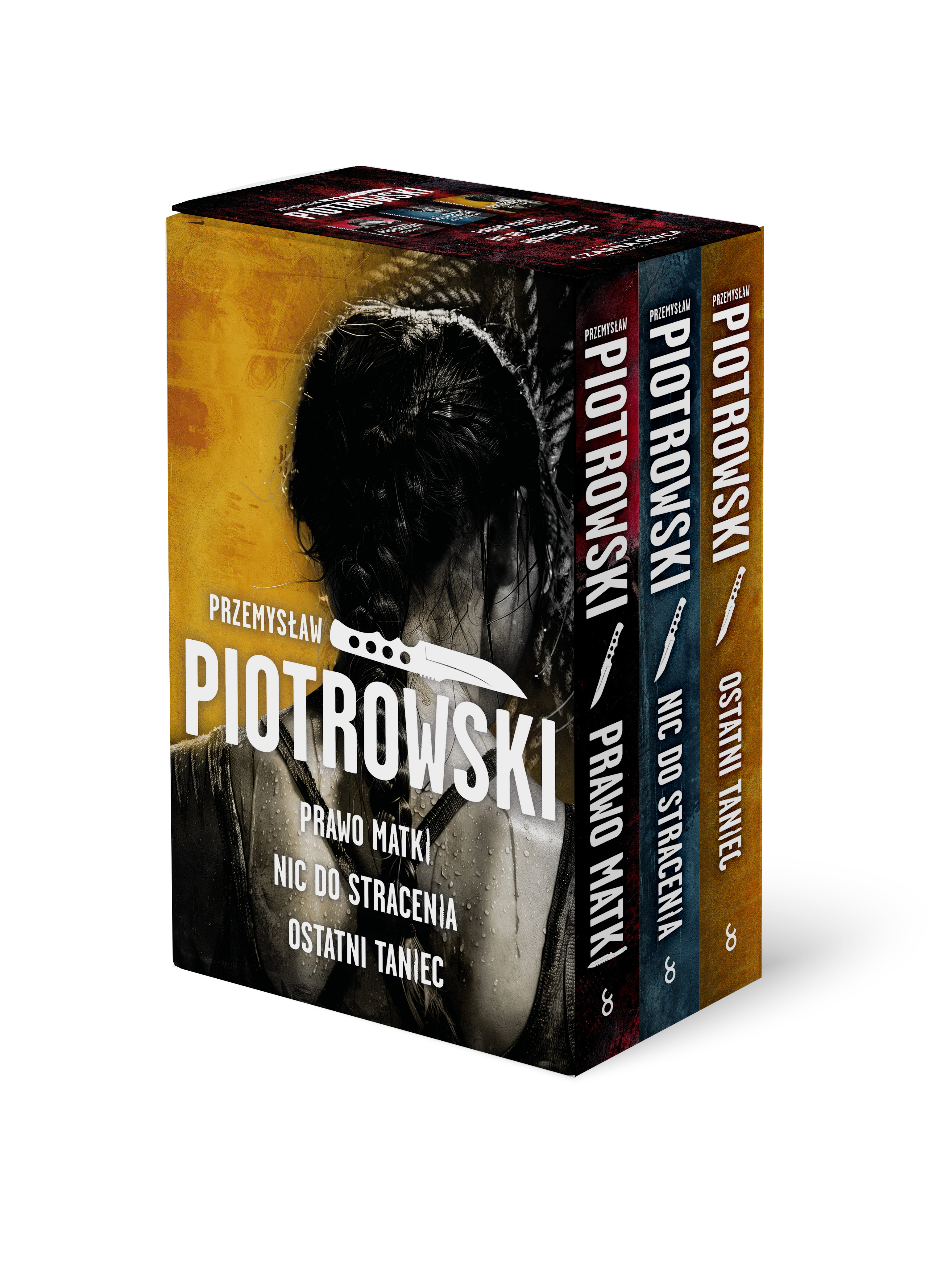 Opis produktuZasady bezpieczeństwaTrylogia Przemysława Piotrowskiego, autora bestsellerowych kryminałów z komisarzem Igorem Brudnym! W skład pakietu wchodzą: Prawo matki, Nic do stracenia, Ostatni taniec Prawo matki Luta Karabina, kiedyś jedna z najlepszych kobiet w siłach specjalnych, obecnie zarabia na życie pracując na platformie wiertniczej u wybrzeży Norwegii. Samotnie wychowuje dwójkę dzieci i spędza z nimi każdą wolną chwilę. W trakcie rodzinnego wypoczynku dochodzi do tragedii – jej córka zostaje porwana! Czas ucieka, działania policji nie dają rezultatów, a przecieki świadczą, że dziewczynka padła ofiarą wyjątkowo brutalnej szajki handlarzy żywym towarem. Kobieta nie ma wyjścia, bierze sprawy w swoje ręce. Rozpoczyna się dramatyczna walka o odzyskanie córki. Do śledztwa dołącza Zygmunt Szatan, twardy glina i tropiciel, który ma do wyrównania rachunki sprzed lat. Luta – czy tego chce czy nie – też musi wrócić do swojej mrocznej przeszłości. To w niej znajduje się klucz do odzyskania ukochanej córki. Nic do stracenia Po odzyskaniu córki z rąk brutalnej szajki handlarzy żywym towarem Luta Karabina na nowo układa sobie życie. Pracę na platformie wiertniczej zamienia na Wojsko Polskie, gdzie zajmuje się szkoleniem młodych kandydatów na specjalsów. W tym samym czasie Zygmunt Szatan próbuje odbudować swoje życie po krwawej zemście na oprawcy swojej rodziny. Już na policyjnej emeryturze stara się naprawić relacje z synem oczekującym na proces sądowy. Pilnuje też, aby na światło dzienne nie wypłynęła mroczna prawda o masakrze w świebodzińskiej masarni. Wszystko się komplikuje, gdy informator donosi mu, że w więzieniu, w którym wyrok odbywa jeden z porywaczy dziewczynki, ktoś węszy przy sprawie. Nieszczęście nie odpuszcza. Lutę czeka kolejna ciężka próba – umiera jej ukochany dziadek, były oficer tureckiego wywiadu. Islamska tradycja wymaga szybkiego pochówku, więc kobieta musi wybrać się w niespodziewaną podróż do Balik?ilar. Dopiero w Turcji odkrywa, czym są prawdziwe tarapaty… Ostatni taniec Lutosława Karabina stoi przed najtrudniejszym wyborem. Wplątana w skomplikowaną intrygę rosyjskiego wywiadu GRU, zostaje zmuszona do wykonania niebezpiecznego zadania – likwidacji Joaquina Gutiérreza, przewodniczącego Komitetu Wojskowego NATO, który wkrótce przybędzie do Polski. Stawka jest ogromna, bo zakładnikami Rosjan są jej ukochane dzieci. Luta nie ma złudzeń co do konsekwencji odmowy. Zdradzona i zmuszona do posłuszeństwa, otrzymuje tymczasem nieoczekiwane wsparcie od najwierniejszych kompanów z elitarnej Jednostki Wojskowej Komandosów, w której niegdyś służyła jako strzelec wyborowy. Walcząc o życie najbliższych, Luta musi poruszać się jak po polu minowym. Każdy ruch, każde słowo mogą przybliżyć ją do celu lub wystawić na jeszcze większe niebezpieczeństwo. Czy Luta wykona zlecone zadanie, czy jednak zaryzykuje i ruszy na bezpośrednie starcie z najbardziej bezlitosnym tworem rosyjskiego reżimu? Każda decyzja wydaje się zła, zwłaszcza w przededniu nadciągającej wojny… x