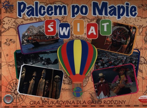 Opis produktuZasady bezpieczeństwaPalcem po mapie Świat to geograficzna gra edukacyjna, dzięki której gracze poznają ciekawe miejsca naszego globu. Zapoznają się z mapą Świata, położeniem miast, rzek, gór i Państw. Gra polega na losowym wybraniu karty z opisem konkretnego miejsca i jak najszybszym odszukaniu go na mapie. Ten z uczestników, który jako pierwszy odnajdzie na mapie wylosowane miejsce zdobywa kartę.   sugerowany wiek graczy: 7-99 lat liczba graczy: 2 -6 orientacyjny czas gry : 40 minut Zawartość: