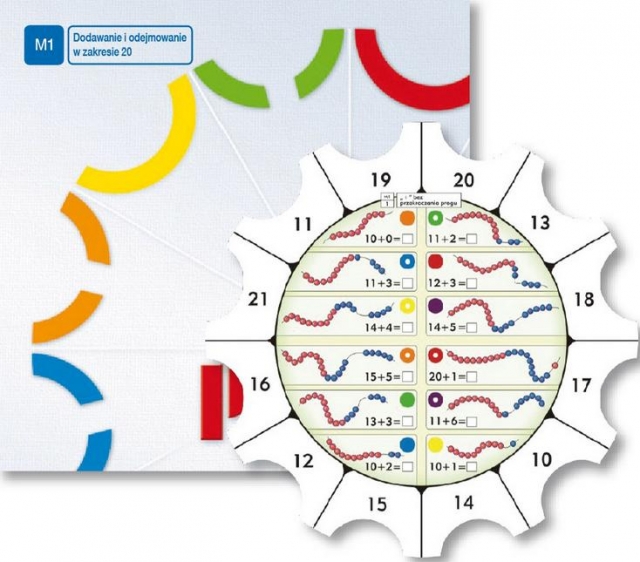 Tarcze ćwiczeń M1 to komplet 12 tarcz ćwiczeń do "Palety" przeznaczonych dla dzieci w klasach od 0 do III. Obejmują podstawowe działania arytmetyczne: