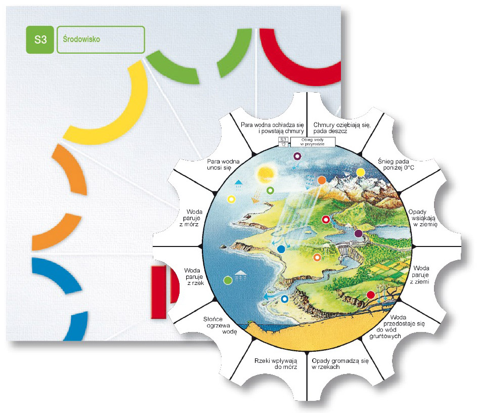 Tarcze ćwiczeń S3 to komplet 12 tarcz tematycznie dotyczących środowiska. Dzieci uczą się rozpoznawania zwierząt i roślin, wyróżniania ich charakterystycznych cech, przyporządkowania miesięcy porom roku; zdobywają interesujące wiadomości dotyczące obiegu wody w przyrodzie i poznają warstwową budowę lasu. Ćwiczenia przybliżają dzieciom zagadnienia ekologiczne, poświęcone ochronie wybranych gatunków roślin i zwierząt, parkom narodowym i obszarom zagrożenia ekologicznego w Polsce. Oryginalne rozwiązania graficzne nie dają dziecku gotowych odpowiedzi, a jednak w trafny sposób na nie naprowadzają. Barwne ilustracje dostarczają dziecku właściwych wrażeń estetycznych, rozwijają wrażliwość i inspirują do własnych prób plastycznych.