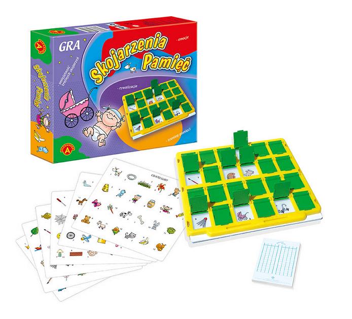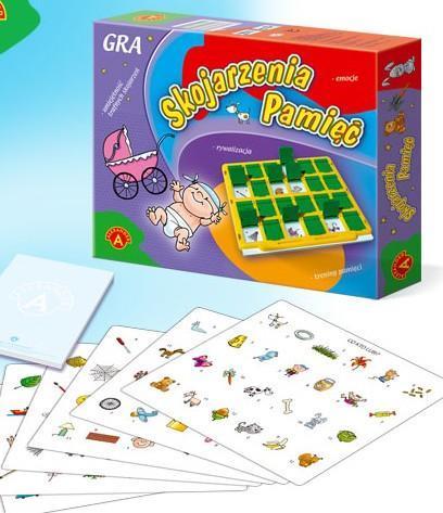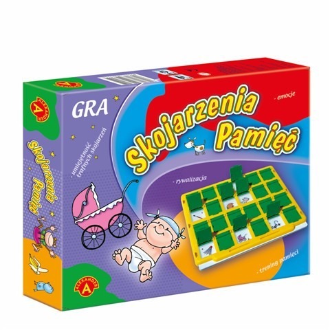 W tej grze wygrywa ten, kto będzie właściwie kojarzył odsłaniane obrazki (np. dziecko i wózek) pamiętając miejsce ich położenia. Gra jest znakomitym treningiem koncentracji i pamięci, a także emocjonującą zabawą. Zawartość pudełka: 6 tablic, plastikowa ramka, notes, instrukcja.
