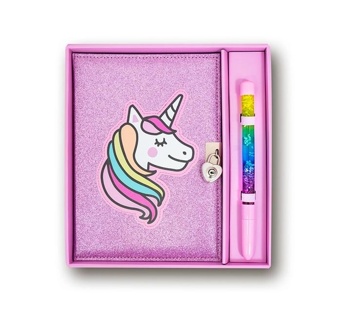 Opis produktuZasady bezpieczeństwaZestaw zawiera różowy, brokatowy pamiętnik oraz długopis z wodną dekoracją z konfetti. Pamiętnik ozdobiony jest podobizną jednorożca. Pamiętnik ma 80 stron w linie z ozdobnym nadrukiem. Całość zapakowana jest w eleganckie pudełeczko. x