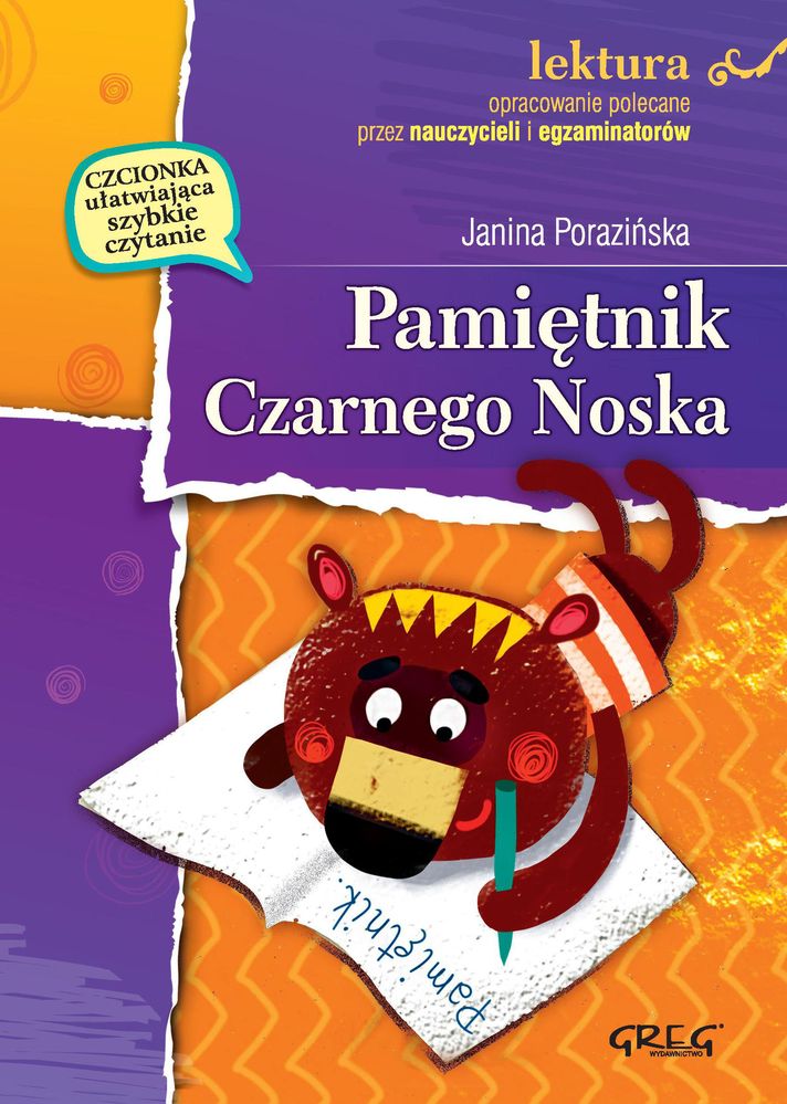 tym wydaniu znajdziesz odpowiedzi na pytania z podręcznika - pewniak na teście, czyli wskazanie zagadnień, które zwykle pojawiają się w pytaniach z danej lektury we wszelkich testach sprawdzających wiedzę, a także w podręcznikach i na klasówkach. Zawiera bardzo szczegółowe streszczenie oraz drugie skrócone, ułatwiające szybkie przygotowanie się przed lekcją. Opracowanie zawiera plan wydarzeń, wnikliwie wyjaśnioną problematykę oraz szerokie charakterystyki bohaterów. Czarny Nosek to sympatyczny pluszowy miś, którego właścicielką jest mała dziewczynka - Małgosia. Miś jest ciekawski, wesoły i przyjaźnie nastawiony do wszystkich. Razem z Małgosią poznaje miejskie życie, ale prawdziwa przygoda zaczyna się dopiero wtedy, gdy gubi się i trafia na wieś, do prawdziwego dzikiego lasu, a potem w góry. Nowe znajomości, nowe miejsca, tyle nowych doświadczeń... Wybierzcie się i Wy w podróż po Polsce z Czarnym Noskiem, a na pewno nie będziecie się nudzić! Ponadczasowa, znana wielu pokoleniom książka Janiny Porazińskiej po raz pierwszy w wydaniu lekturowym z opracowaniem! Uczeń znajdzie tu opisy bohaterów, streszczenie akcji, wyjaśnienie problematyki, plan wydarzeń - a wszystko prostym językiem, zrozumiałym dla najmłodszych uczniów. Zapraszamy do lektury! x