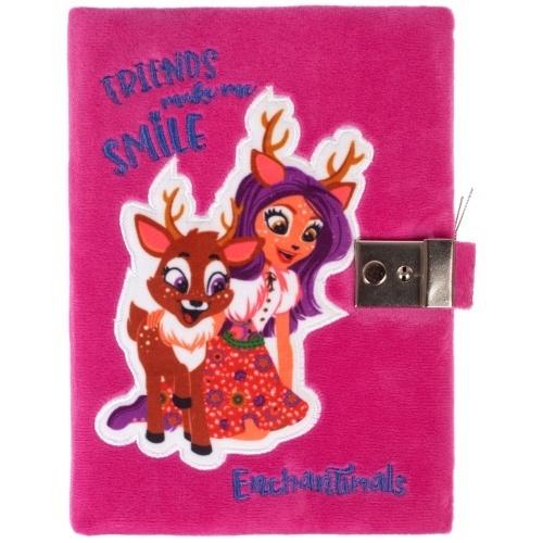 Pamiętnik o wymiarach 20 x 15 cm zamykany na kłódkę aby lepiej chronić małe sekrety. Okładka pokryta kolorowym, miękkim pluszem i grafiką Enchantimals. Rozwija wyobraźnię i umiejętność pisania dziecka.