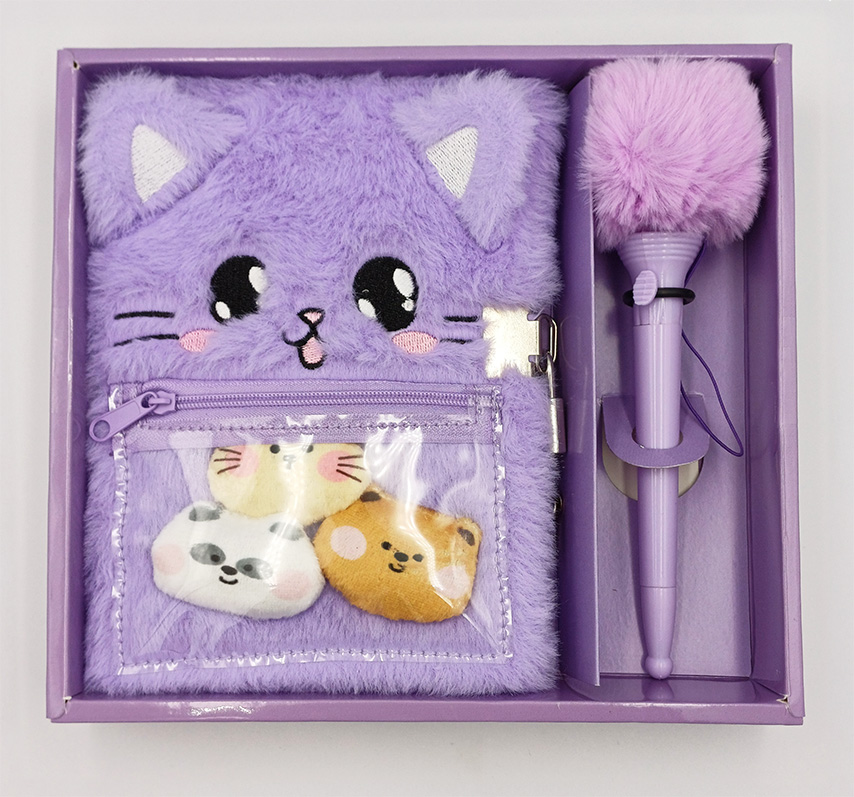 Opis produktuZasady bezpieczeństwaPAMIĘTNIK KOTEK od Toys Inn zawiera 40 kartek w linie. Ma twardą, pluszową oprawę z wizerunkiem kota i jest zamykany na kłódkę. Pamiętnik posiada również zasuwaną kieszonkę, w której umieszczone są małe, pluszowe maskotki. W zestawie znajdują się również długopis z wyrzutnią, dzięki której pompon z długopisu wyskakuje do góry. x