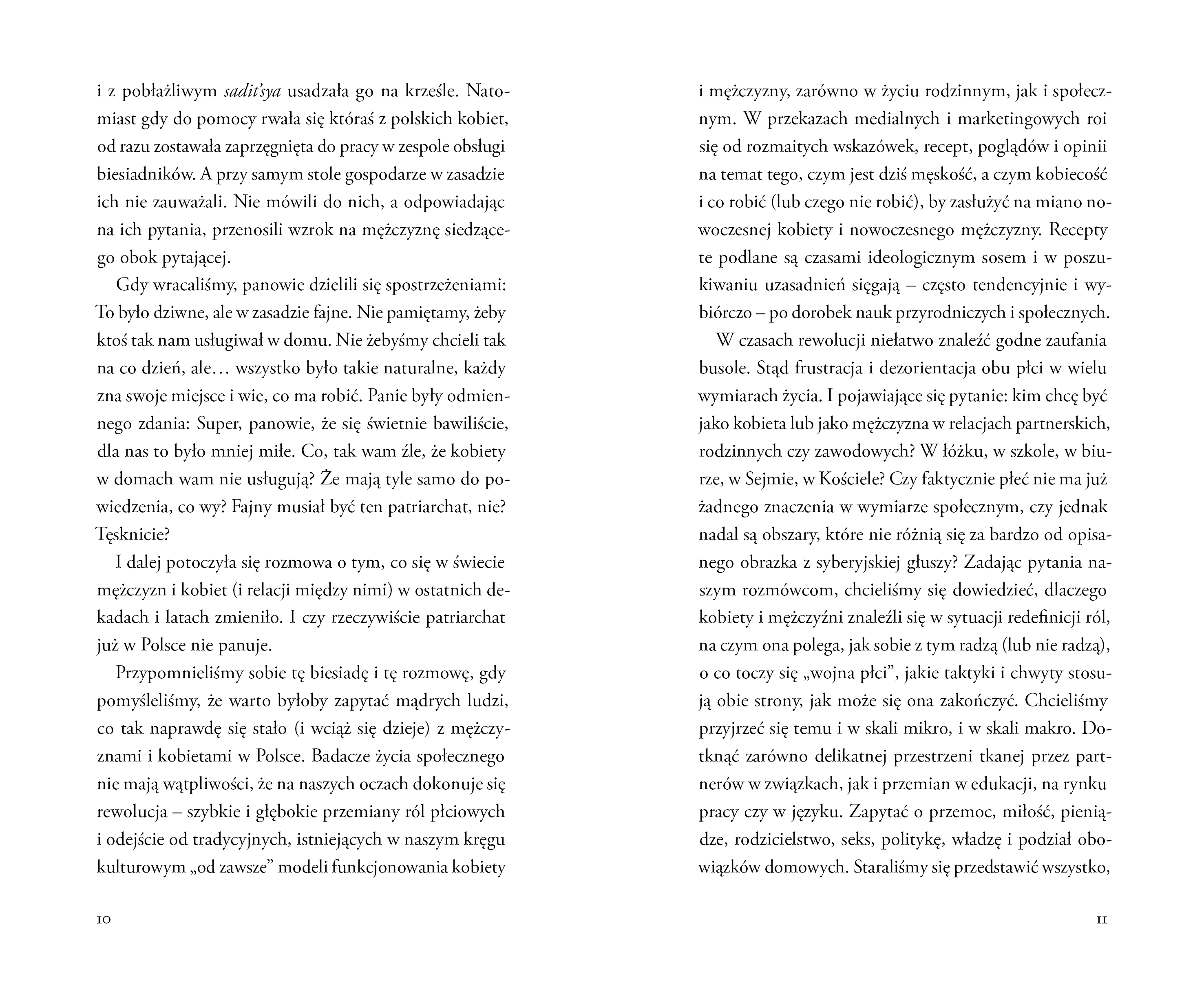 Opis produktuZasady bezpieczeństwa43% osób na stanowiskach menadżerskich w Polsce to kobiety - to drugi najlepszy wynik w Europie. Tylko dlaczego jeszcze niedawno mieliśmy w polskim rządzie więcej ministrów o imieniu Mariusz niż kobiet? Czy płeć rzeczywiście nie ma już żadnego znaczenia? A może właśnie grozi nam wojna płci? O co walczą feministki, a czego nie chcą uznać obrońcy patriarchatu? Czemu niektóre kobiety nie lubią feminatywów? I jak równouprawnienie wpływa na seks? Na naszych oczach rozgrywa się spóźniona rewolucja i pierwsza prawdziwa dyskusja o rolach kobiet i mężczyzn. Wojciech Harpula i Maria Mazurek przyglądają się temu, co dzieje się w naszych domach i w przestrzeni publicznej - edukacji, polityce i języku. Autorzy prowadzą nieoczywiste i prowokujące rozmowy, w których pytają o podział obowiązków, przemoc, miłość, pieniądze i władzę. Odpowiadają m.in. Bogdan de Barbaro, Andrzej Depko, Zuzanna Radzik i Ewa Woydyłło-Osiatyńska. W łóżku, szkole, biurze, Sejmie czy kościele - co w Polsce znaczy dziś bycie kobietą i bycie mężczyzną? x