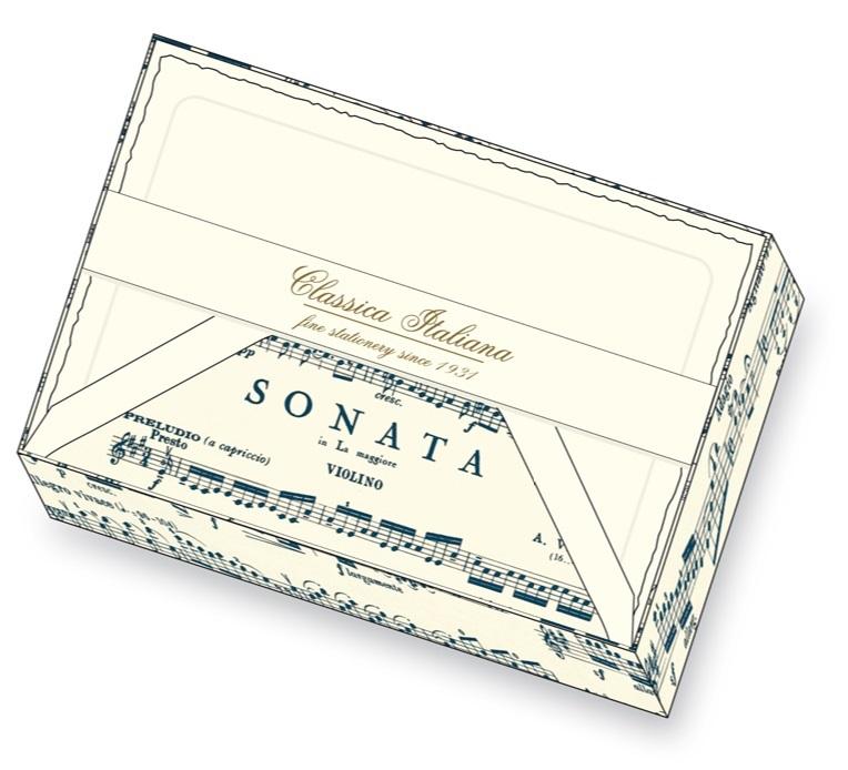 Papeteria w ozdobnym pudełku, papier o gramaturze 240g/m2. W zestawie znajduje się 10 kopert i 10 karnetów.