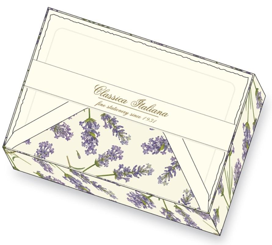 Papeteria w ozdobnym pudełku, papier o gramaturze 390g/m2. W zestawie znajduje się 10 kopert i 10 kartek.