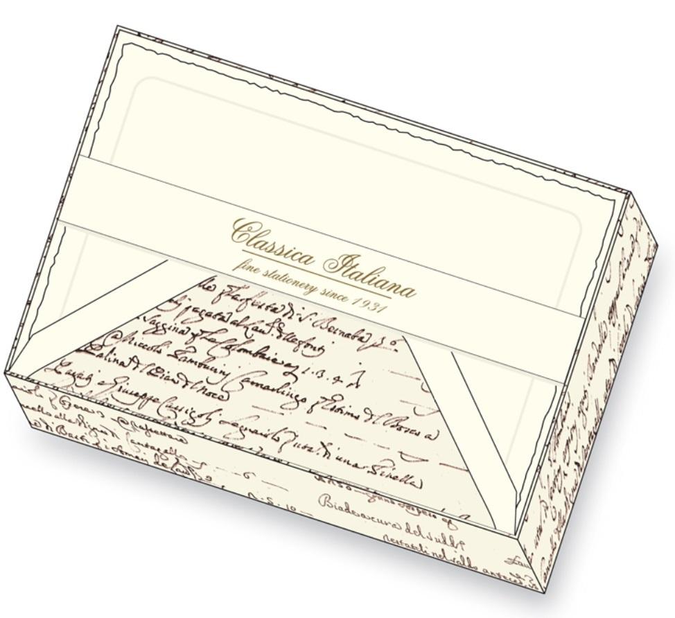Papeteria w ozdobnym pudełku, papier o gramaturze 240g/m2. W zestawie znajduje się 10 kopert i 10 karnetów.