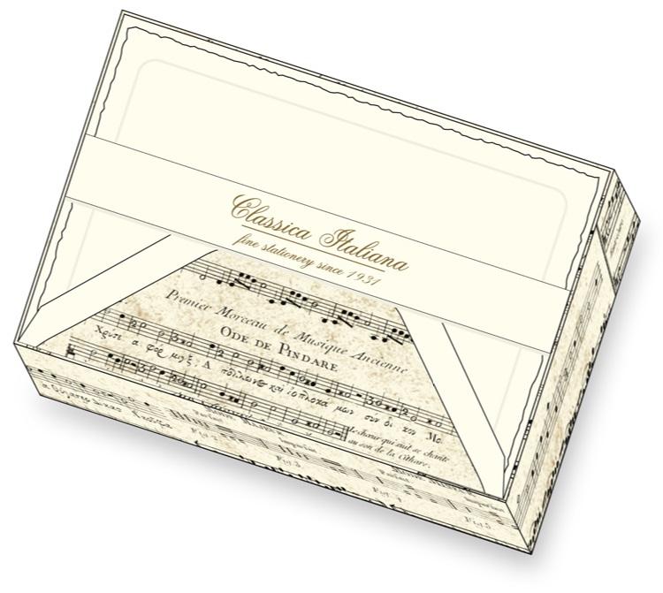Papeteria w ozdobnym pudełku, papier o gramaturze 240g/m2. W zestawie znajduje się 10 kopert i 10 karnetów. Produkt z ekskluzywnej galanterii wyprodukowany we włoskiej manufakturze.