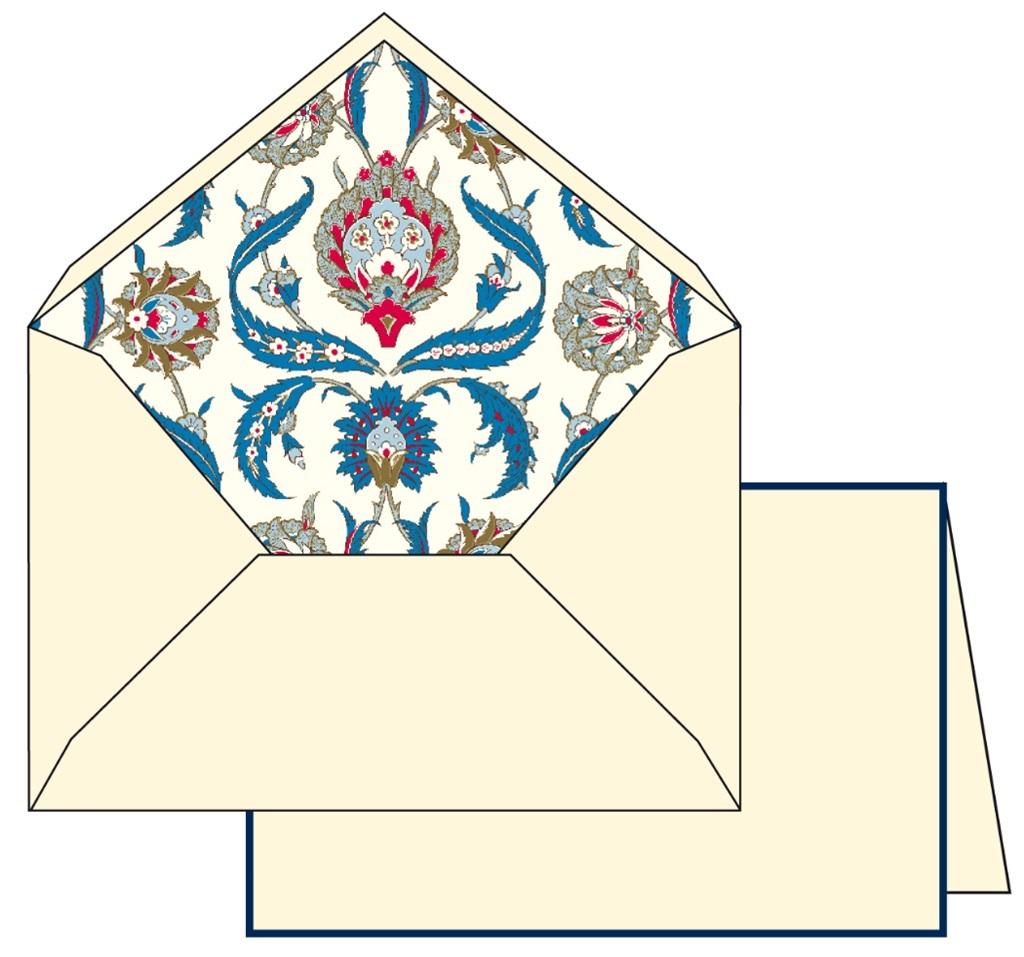 Papeteria w ozdobnym pudełku, papier o gramaturze 240g/m2. W zestawie znajduje się 10 kopert i 10 karnetów.