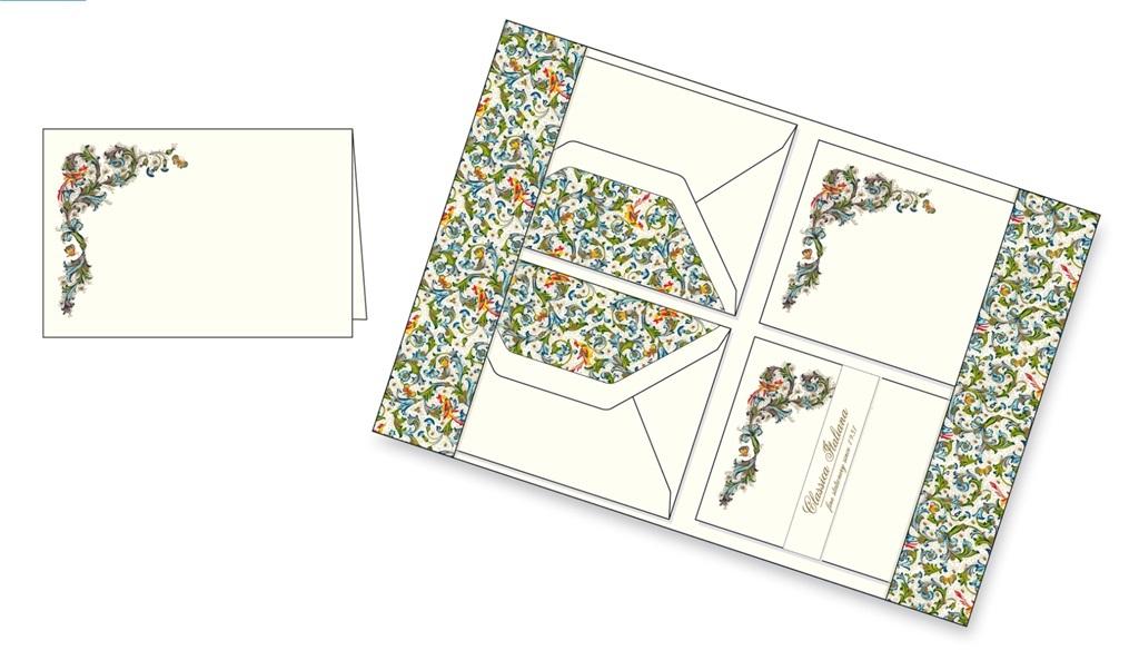 FZB 002W Papeteria Wallet 6 kopert i 6 karnetów. Papeteria w opakowaniu typu Wallet, koperty posiadają zaznaczoną linię, papier o gramaturze 250/m2. W zestawie znajduje się 6 kopert i 6 karnetów. Produkt z ekskluzywnej galanterii wyprodukowany we włoskiej manufakturze.