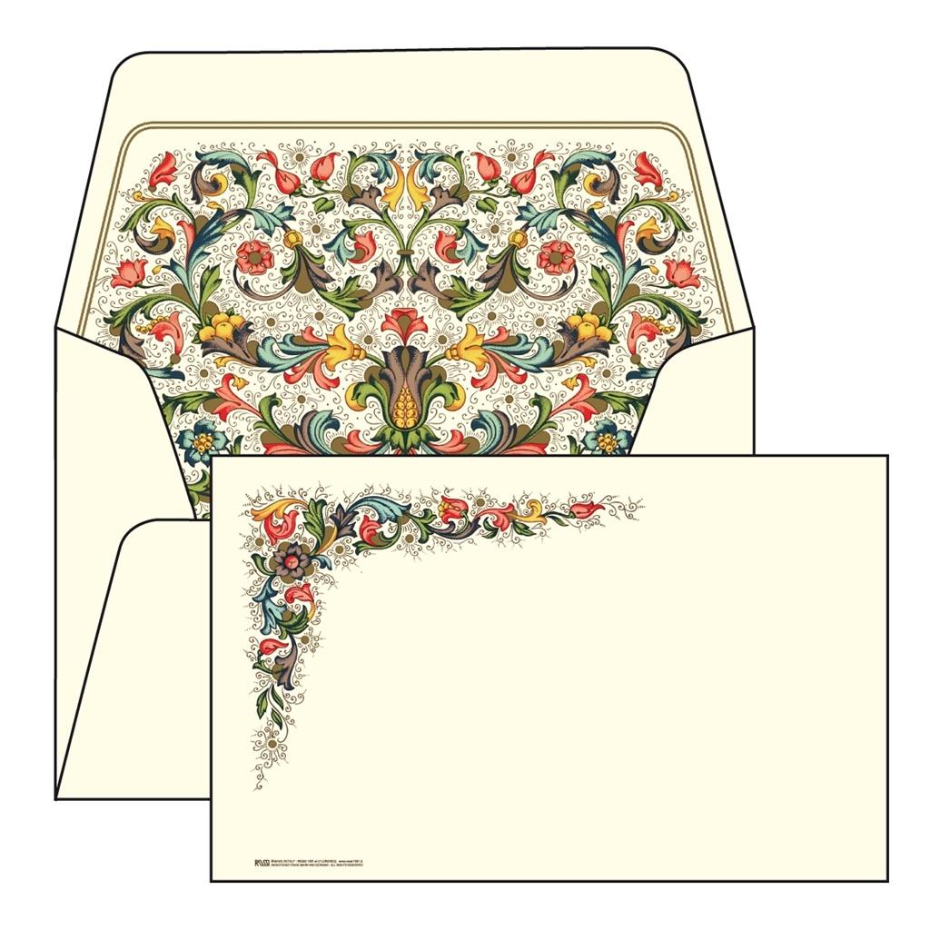 "Papeteria w opakowaniu typu Wallet, koperty posiadają zaznaczoną linię, papier o gramaturze 240g/m2. W zestawie znajduje się 6 kopert i 6 karnetów.