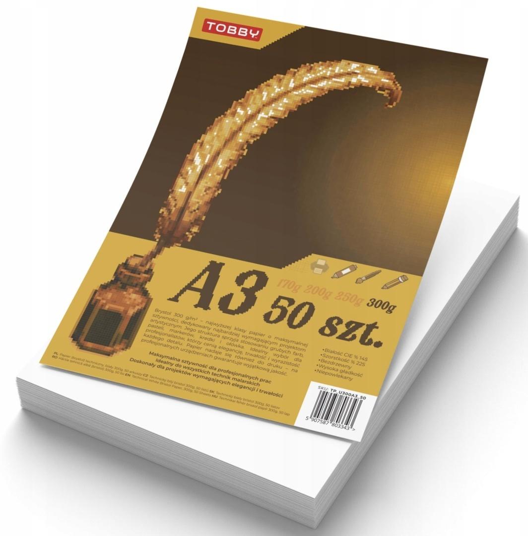Opis produktuZasady bezpieczeństwaPapier techniczny brystol gruby 300g A3 50 ark. do farb markerów ołówka Papier brystol 300 g/m2 A3 - 50 ark. Ilośc arkuszy: 50 ark. Gramatura: 300 g/m2 Kolor: biały Struktura: techniczny Format: A3 (420 x 297 mm) Biały papier techniczny A3 Najwyższej klasy papier o maksymalnej sztywności, dedykowany najbardziej wymagającym projektom artystycznym. Jego struktura doskonale współpracuje z grubymi farbami, pastelami, markerami, kredkami i ołówkiem. Idealny wybór dla profesjonalistów, którzy cenią elegancję, trwałość i wyrazistość każdego detalu. Najważniejsze cechy Wysoka jakość powierzchni - szorstkość 225% oznacza optymalną przyczepność dla ołówka, cienkopisów i kredek, dzięki czemu rysowanie jest płynne i precyzyjne. Papier bezdrzewny - wykonany z oczyszczonej celulozy, charakteryzuje się trwałością i odpornością na żółknięcie. Idealny do archiwizacji, szkiców oraz projektów, które mają przetrwać lata. Wysoka gładkość - idealna pod wydruki o wysokiej rozdzielczości oraz techniki suche, zapewnia estetyczny wygląd i czyste linie. Niepowlekany - naturalna struktura papieru bez chemicznych powłok sprawia, że jest przyjazny dla środowiska i doskonale przyjmuje różne media rysunkowe. Nadaje się również do druku Nasz papier techniczny jest idealny do codziennych zastosowań - drukowania i kserowania Gwarantuje czyste i precyzyjne wydruki Doskonały wybór dla tych, którzy poszukują niezawodności i wyrazistości w codziennym użytkowaniu x