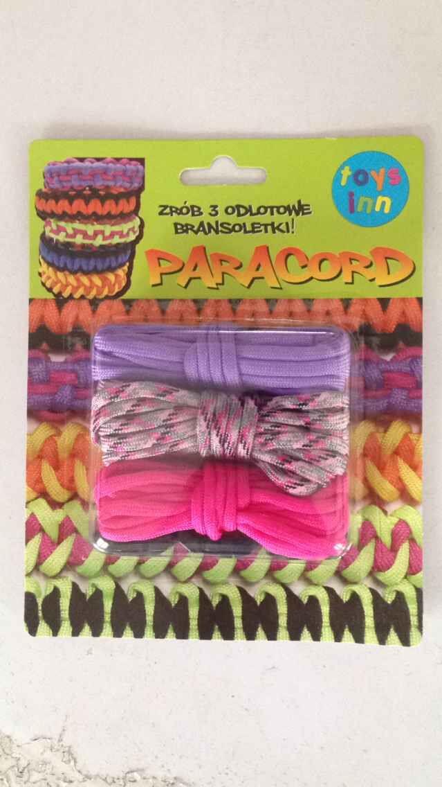 Zestaw do wyplatania bransoletek. Zawiera 3 kolorowe linki o długości 2,8 m i pozwala wykonać 3 bransoletki