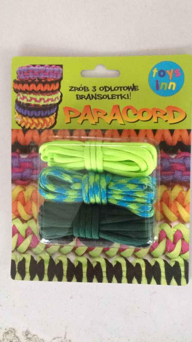 Zestaw do wyplatania bransoletek. Zawiera 3 kolorowe linki o długości 2,8 m i pozwala wykonać 3 bransoletki