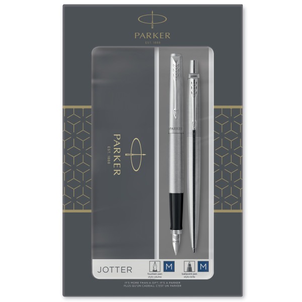 Parker-zestaw pióro+długopis Jotter stalowy CT