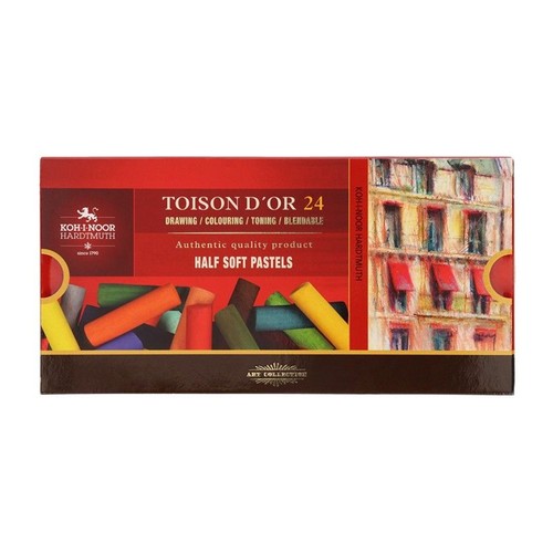Pastele suche TOISON D'OR zostały wyprodukowane z najwyższej jakości składników. Do ich wyprodukowania został użyty bardzo trwały i jednolity pigment oraz bardzo drobno sproszkowane naturalne substancje na bazie węglanu wapnia, minerału kalcytu lub kredy. Są bardzo delikatne, dzięki czemu świetnie się rozcierają. Do rysowania pastelami zaleca się używać papieru z fakturą, gdyż łączą się one z podłożem tylko w sposób mechaniczny. Po zakończeniu pracę należy zabezpieczyć fiksatywą, zapobiega to dalszemu rozmazywaniu się pracy.