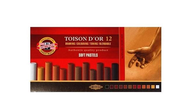 Pastele suche TOISON D'OR, dostępne w zestawach od 6 do 120 kolorów, kompletach 12 odcieni szarosci i brązu oraz na sztuki. Odznaczają się szeroką paletą trwałych kolorów i jednolitością pigmentu w masie pasteli. Są bardzo kruche i delikatne dzieki czemu świetnie się rozcierają, a przez co są bardzo podatne na złamaniai. Do rysowania pastelą zalecane jest używanie papieru z fakturą, gdyż łączy sięz podłożem tylko w sposób mechaniczny (mikro zagłębenia w fakturze papieru). Dlatego po ukończeniu pracę należy zabezpieczyć fiksatywą lub przykryć szybą.