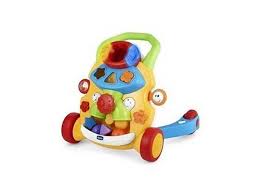 Centrum aktywności i doskonałe wsparcie dla Malucha, który zaczął chodzić! Zabawka pomocna dziecku przy stawianiu pierwszych kroków będąc bezpiecznym i solidnym punktem oparcia. Każdemu krokowi towarzyszy wesoła melodyjka, co jeszcze bardziej dopinguje dziecko do ćwiczenia techniki chodzenia. Ady dziecko się zatrzyma melodyjka milknie, dzięki czemu dziecko przechodzi kolejne kroki, aby uruchomić melodię. Pchacz może służyć również, jako Centrum Zabawy. Należy zablokować tylne kółka, aby przedmiot stał stabilnie przed dzieckiem po czym maluch może bawić się wkładając foremki o różnym kształcie w otwory, przesuwać rybkę lub skrzydła znajdujące się po bokach. Czynności te powodują aktywację wesołej melodii i miganie kolorowych świateł. Chodzik przeznaczony jest dla dzieci od 9 miesiąca życia. Zabawka pobudza rozwój koordynacji ruchowej, wrażliwości wizualnej i słuchowej oraz zdolności logicznego myślenia.